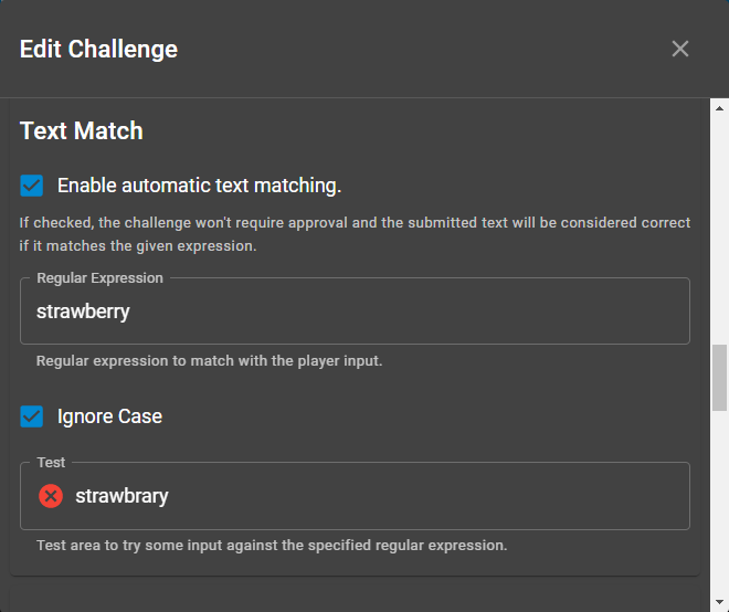 To cut down on the number of submissions your Eventzee hunt admins will need to approve, you may want to use the Text Match option available for Text Challenges.